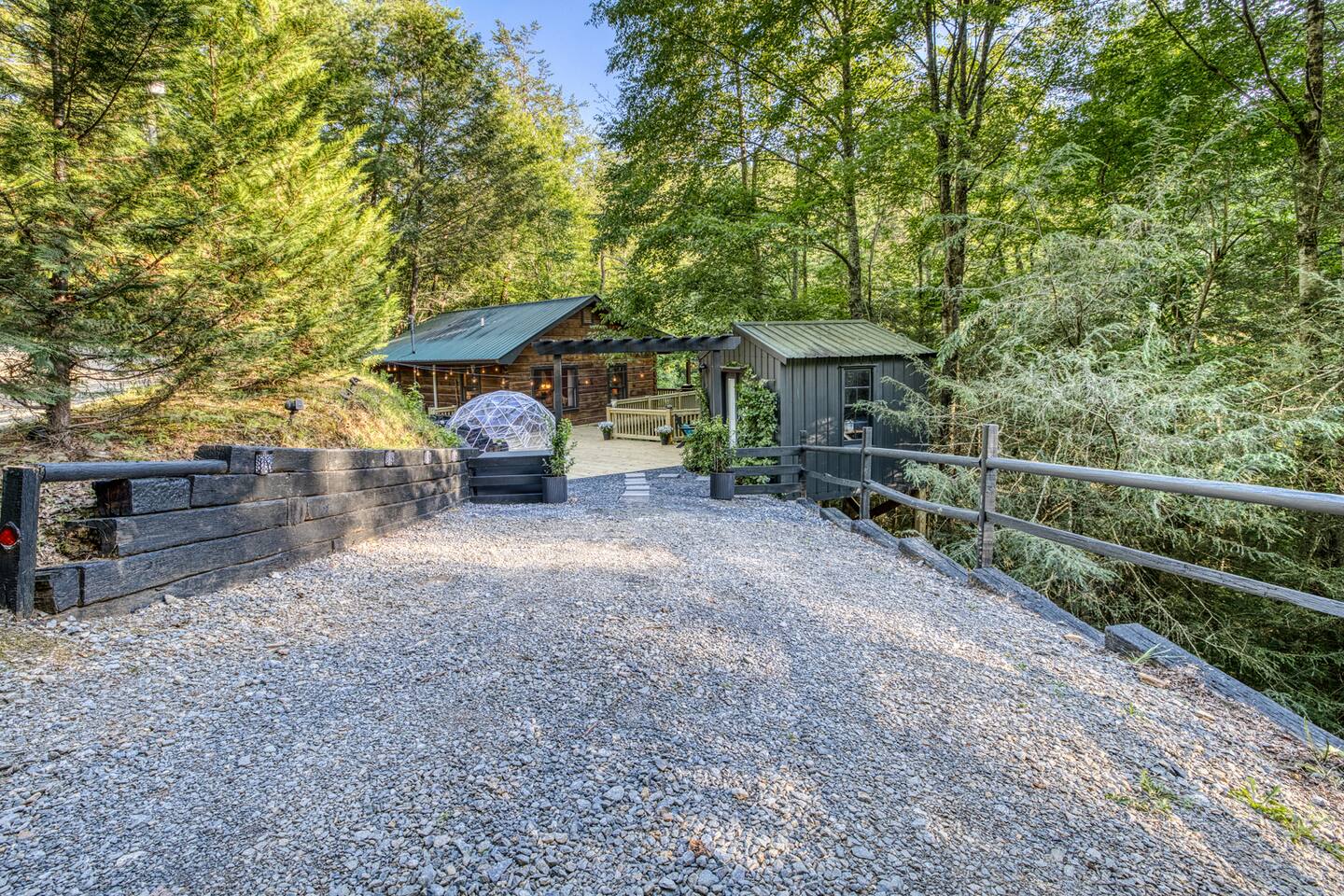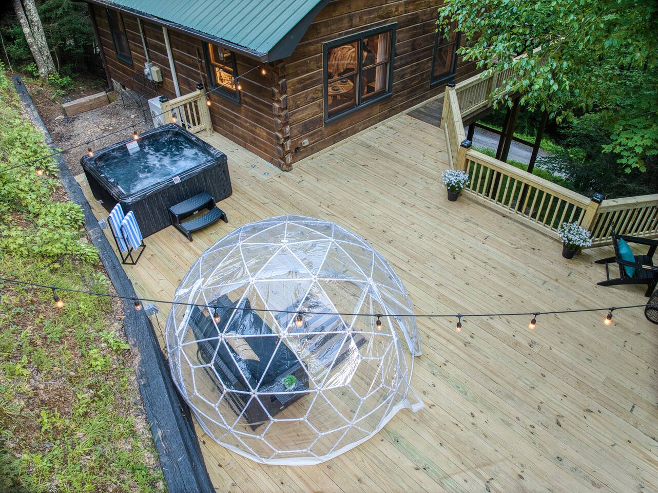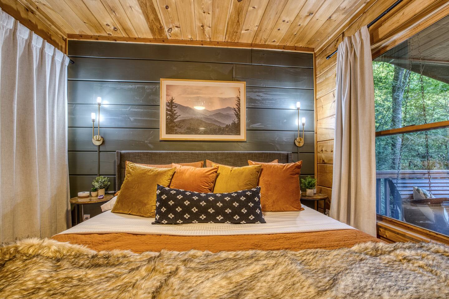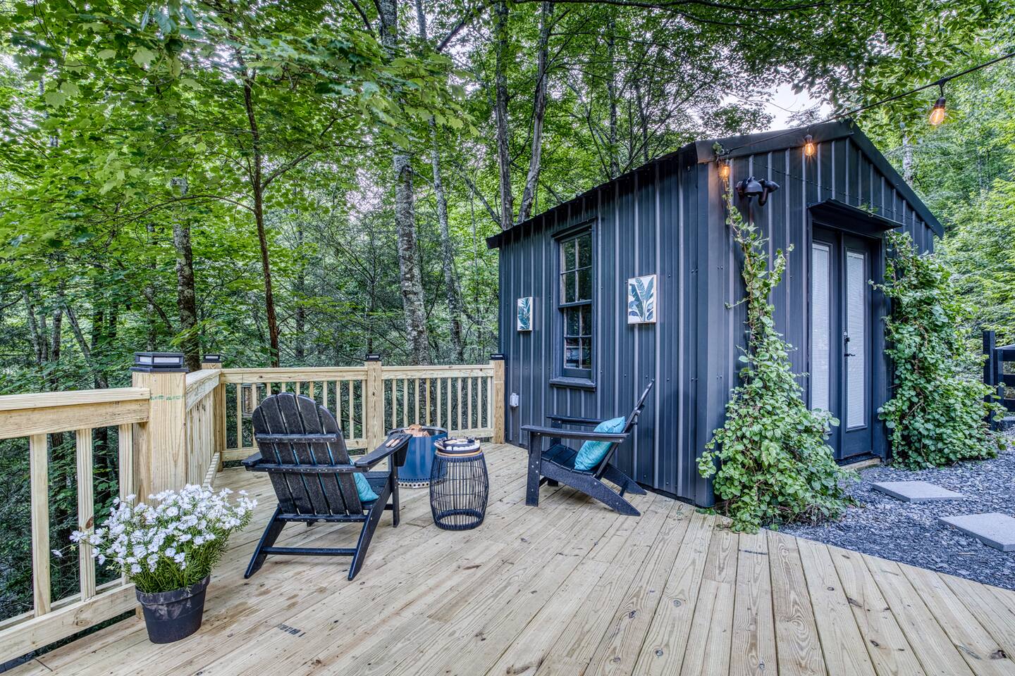 Spend your evenings stargazing from the glowing igloo dome, soaking in the private hot tub, or cuddled up by the crackling Solo Stove firepit. Let the soft murmur of the nearby creek, always audible and visible through the trees, lull you to sleep and gently greet you each morning. Sip coffee from a local roaster or tea on the front porch swing or in the rocking chairs as the forest wakes around you.