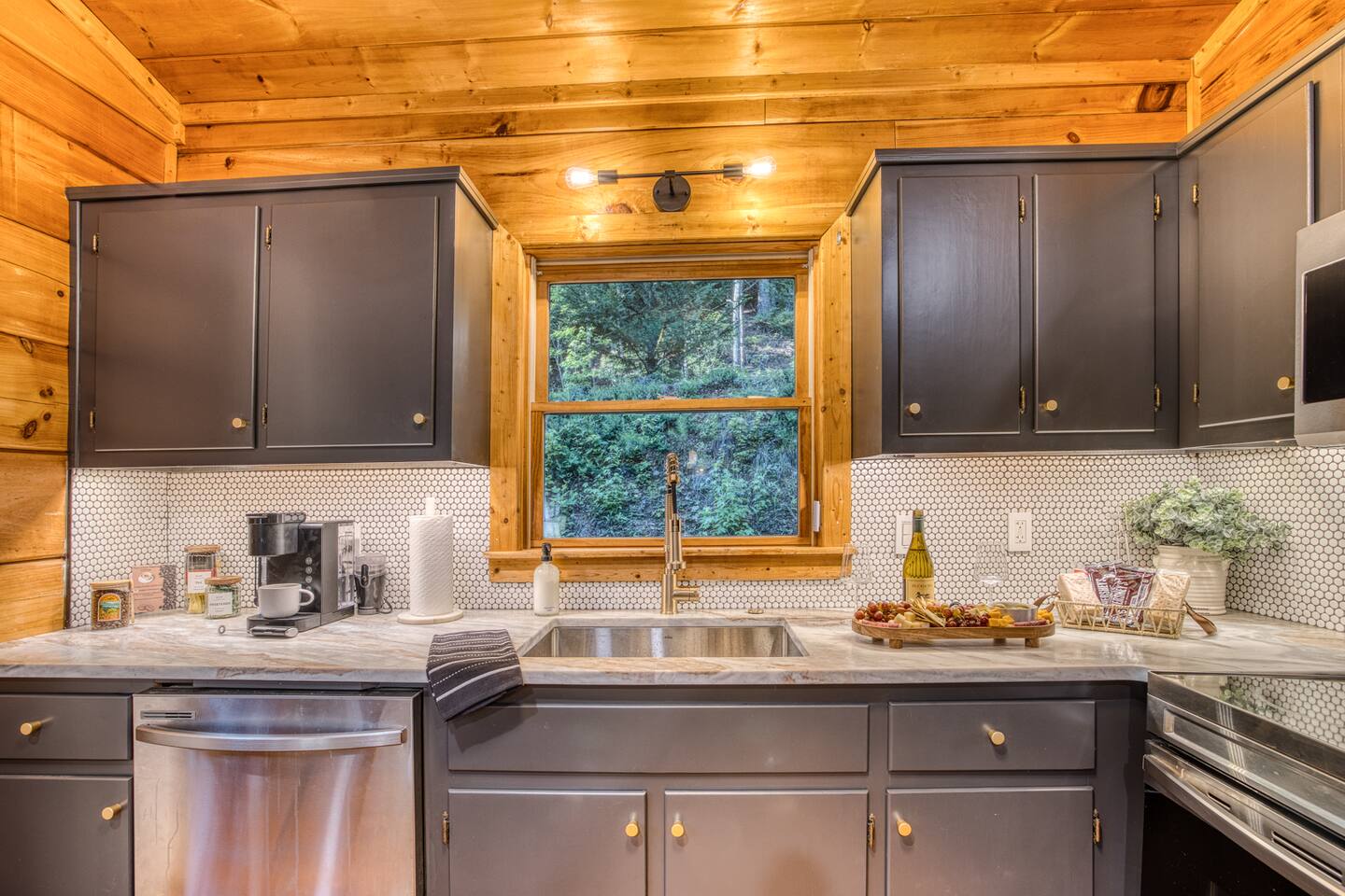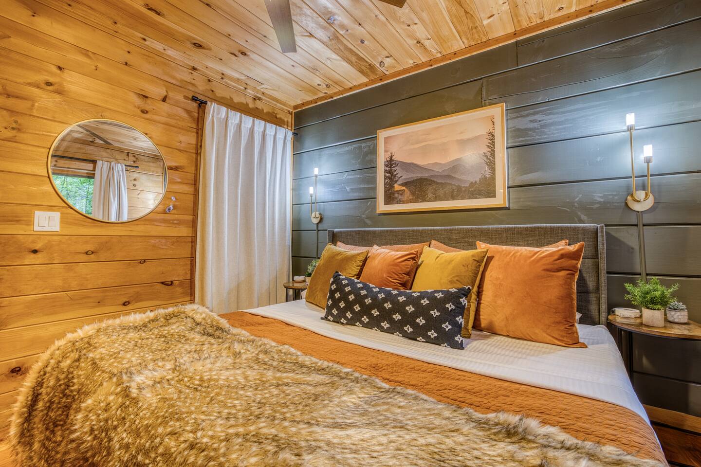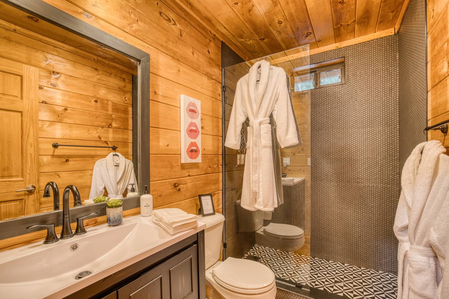 Whispering Waters is a renovated romantic, luxury cabin escape just 10 min from Blue Ridge & 15 min from Ellijay. Unwind in the hot tub, stargaze from the outdoor igloo, sit on the porch listening to the creek and birds, or cook outside on the gas grill. Refresh in the spa-like rain shower with Public Goods bath amenities and spa robes. With plush king and queen beds, a firepit, & upscale touches throughout, this retreat is perfect for couples seeking peace, connection, and indulgence in nature.