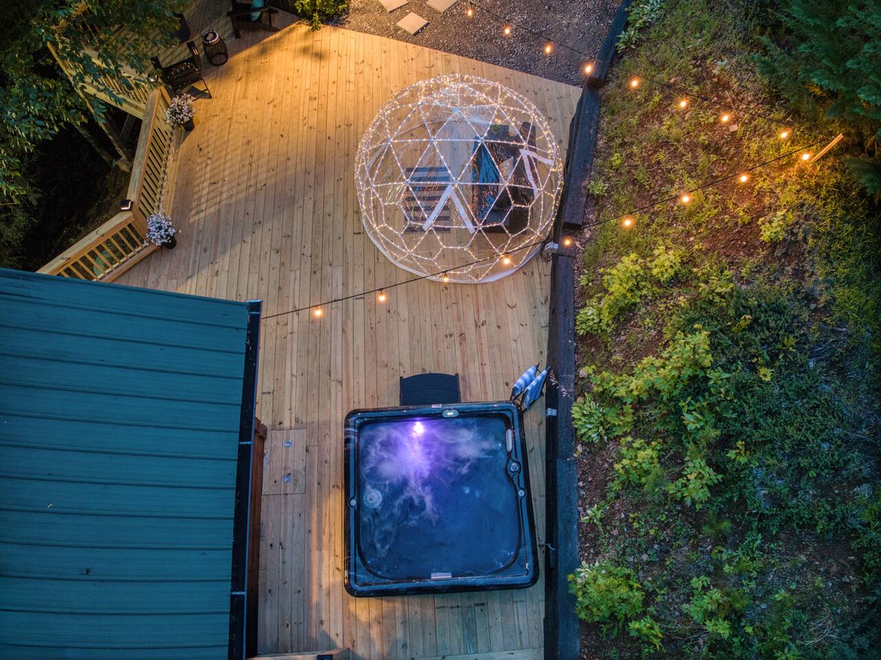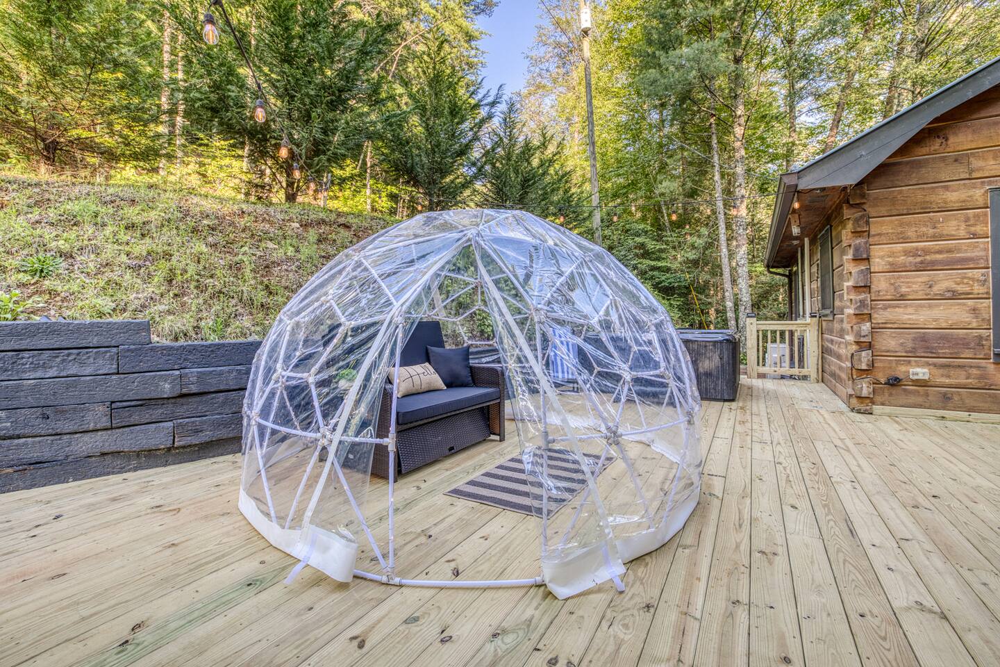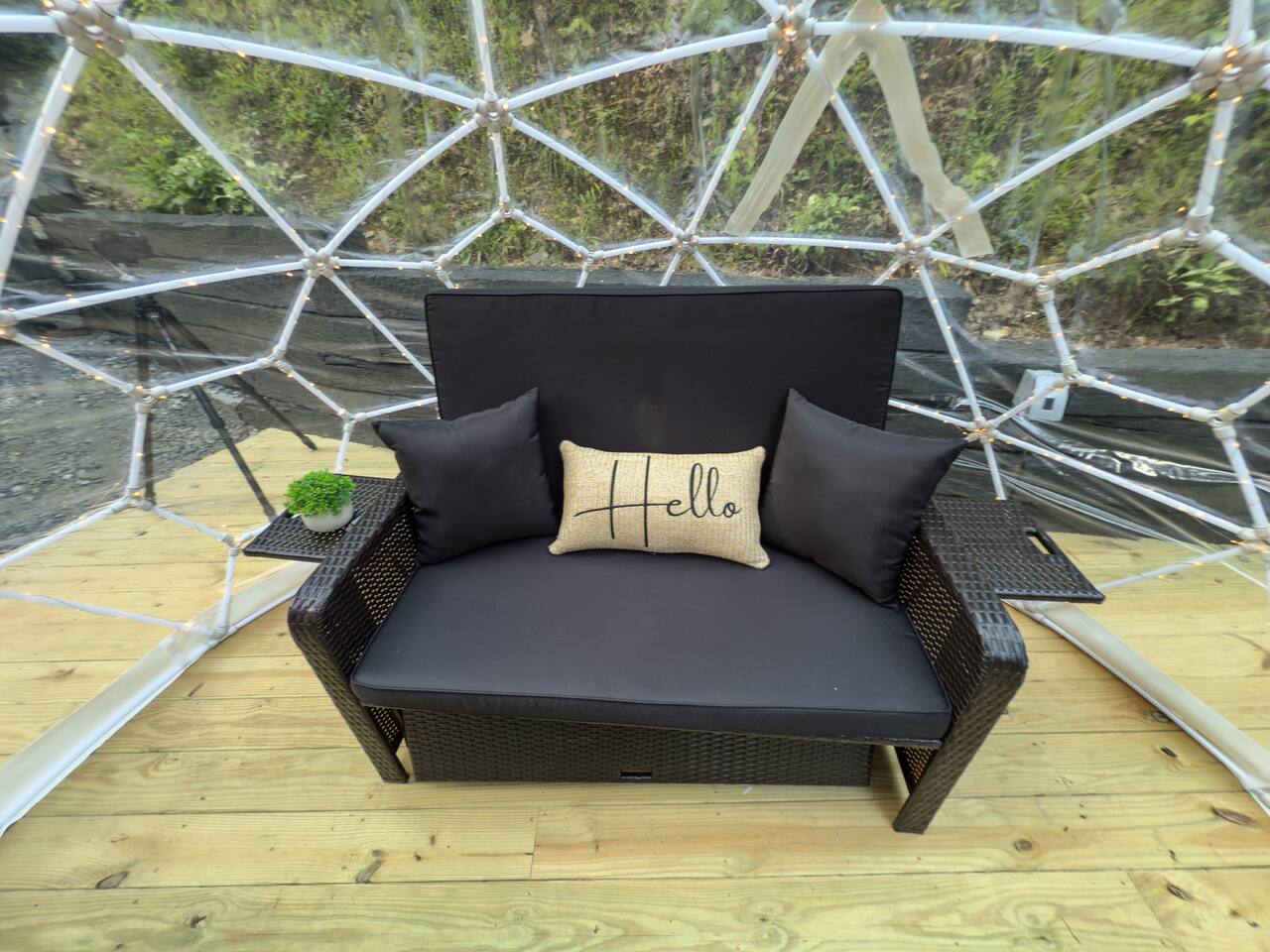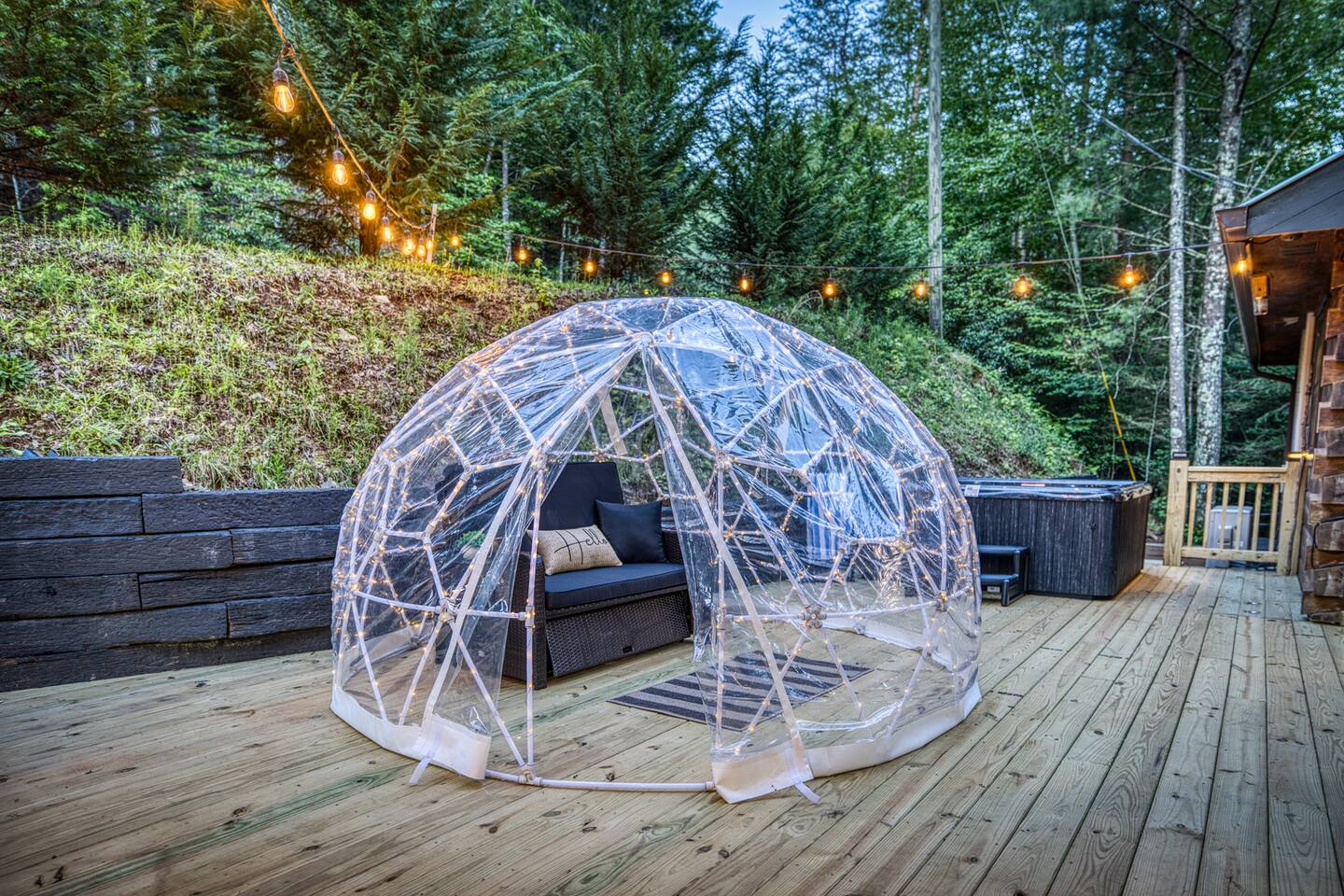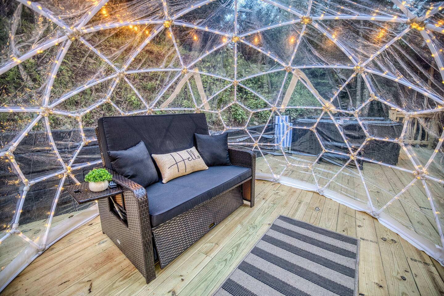 ✨ Igloo Dome: Clear, cozy with sofa that converts to a daybed, perfect for stargazing or reading