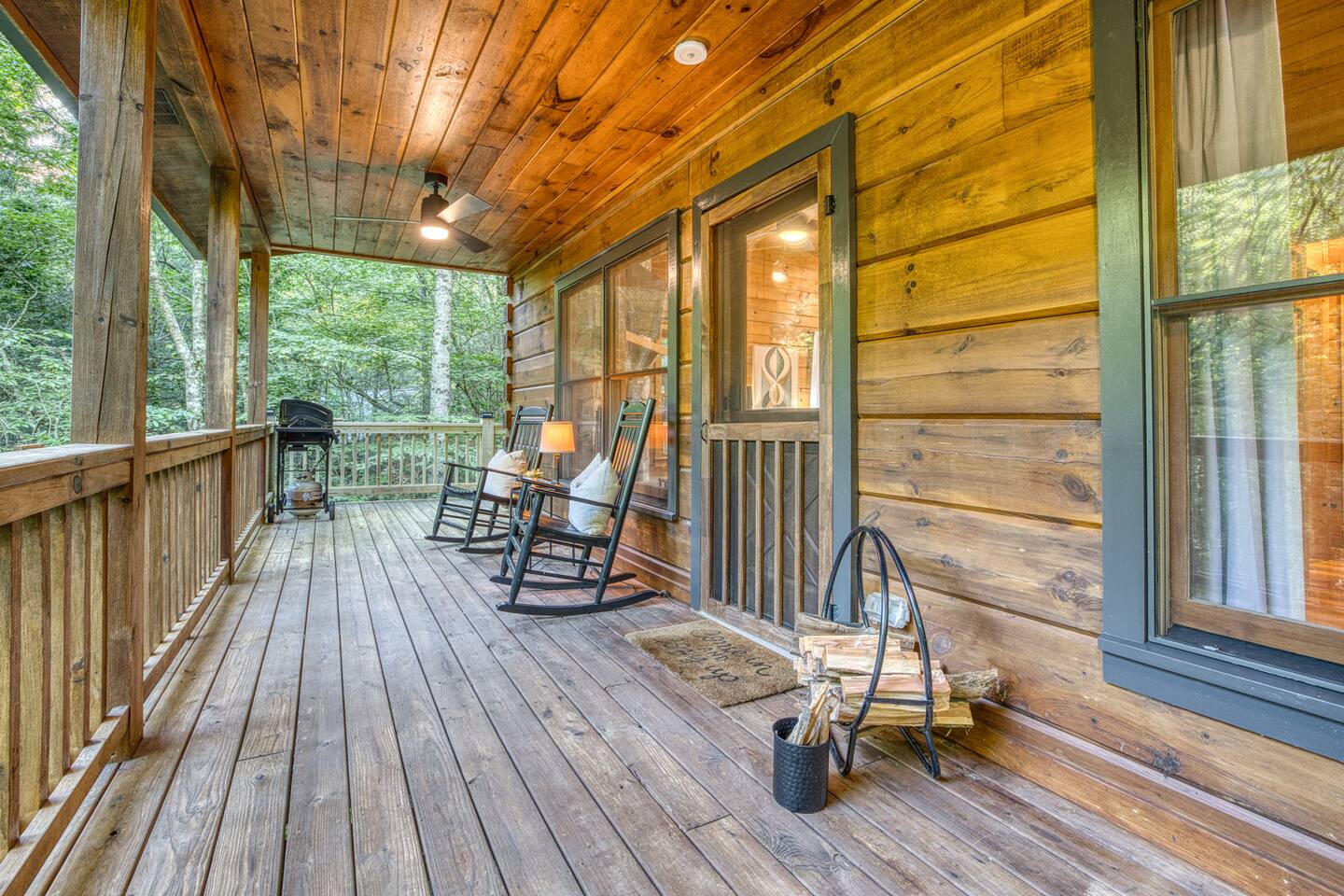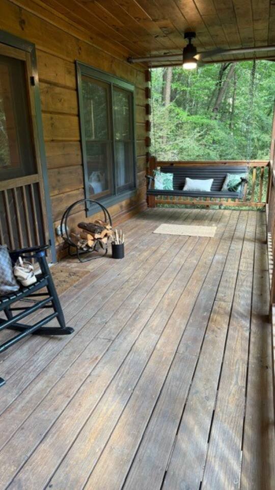 🪵 Porch: Swing, two rocking chairs, and ceiling fans